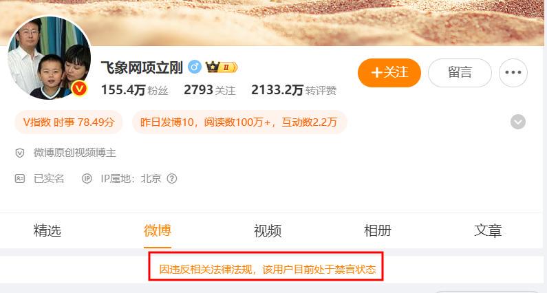 目前,项立刚的微博账号已经被禁言。