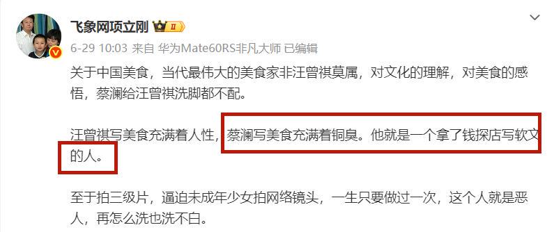 万万没有想到诚信双赢,蔡澜先生去世才几天时间,他就被一位名叫项立刚的人炮轰了。