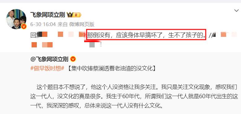 甚至他还暗讽蔡澜丁克是因为身体有问题,无法生子。