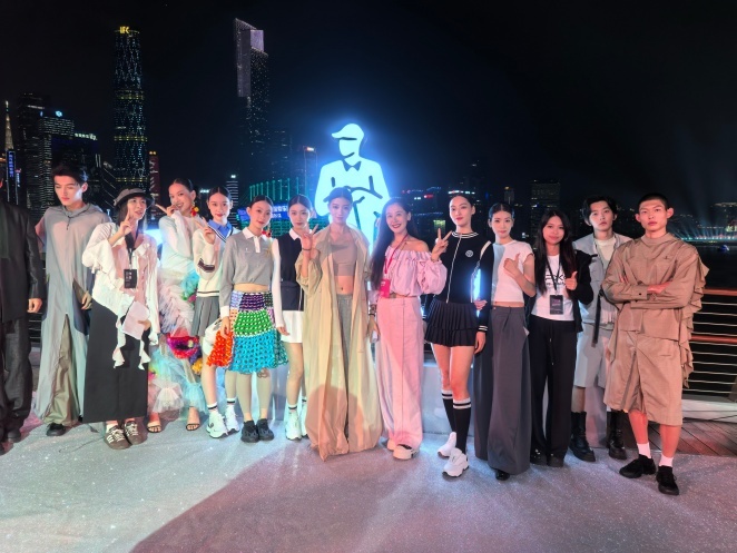 10月29日晚,广州“城市合伙人”主题活动之“广州之夜·比音勒芬时尚大秀”盛装启幕。当晚,海心桥化作全长198米的巨型T台,广州在此上演一场融合时尚、科技与文化的视听大秀,拉开了第十五届全运会倒计时序幕,向全国乃至世界发出邀约。广工艺术与设计学院师生校友组成的超模冠军队,以“T台走秀”的形式,与在场观众共同见证“广州之夜”这张城市新名片的璀璨诞生。