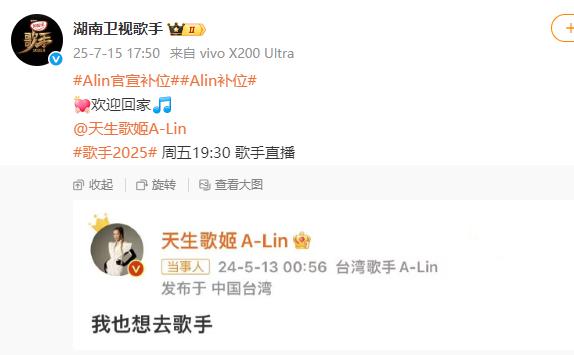 返场限时投票正式结束,投票结果公布:@林志炫TerryLin将作为第一位返场歌手重返《歌手2025》舞台!他在这个舞台上曾为我们留下了《悟空》《秋意浓》深入人心的舞台,极具感染力的嗓音和超强的表现力让我们跟着他的演唱而颤动。