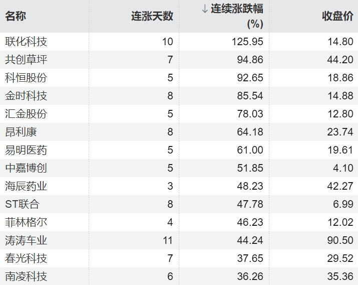 116只个股连续上涨5个交易日及以上联丰配资116只个股连续上涨5个交易日及以上