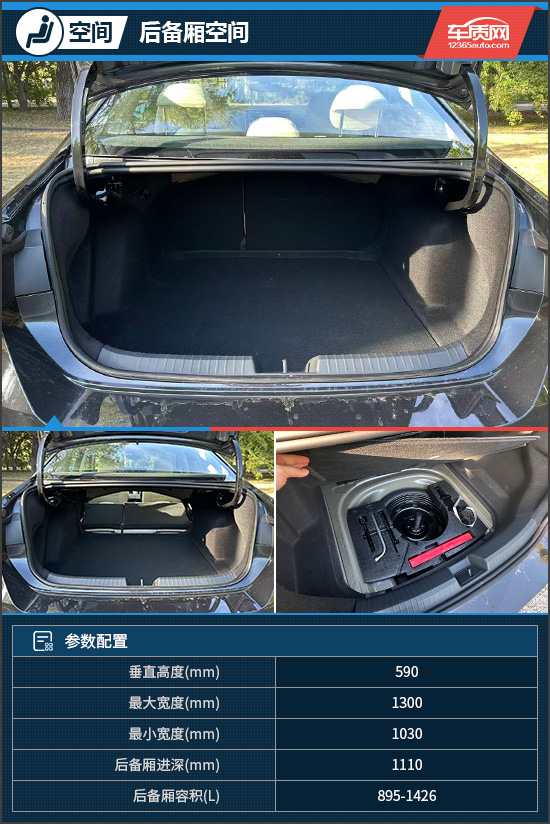 后备厢方面,内部空间非常规整,可以轻松容纳5个登机箱,并且后排座椅靠背可以比例放倒,进一步拓展后备厢空间。此外,地台下方还设置了大容量储物盒,方便放置玻璃水、随车工具等必需但不常用的物品。