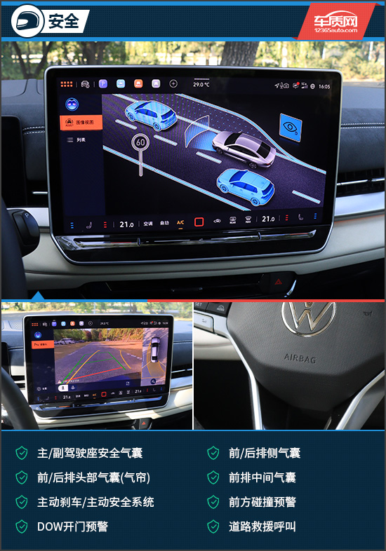 安全配置方面,评测车配备了前/后排侧气囊、前排中间气囊、DOW开门预警等,相比老款车型得到大幅提升,安全防护更为周到。在看不到的地方,全新速腾L的车身采用超80%的高强度钢、28%的热成型钢来构建防护结构,并在中汽中心全网首次90km/h超高速实车正面斜撞测试中获得优异表现,展现出车身防护结构的可靠性与安全性。