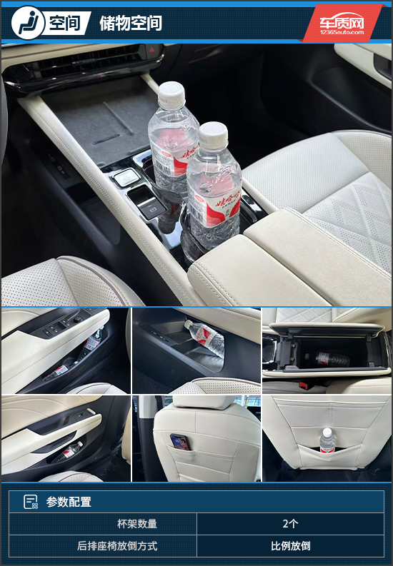 储物空间方面,评测车拥有21个储物区域,大小物品都能找到合适的位置放置,进一步满足了家庭出行的收纳需求。不过,评测车后排未配备杯架,只能将水瓶放置在门板内侧,拿放略有不便。