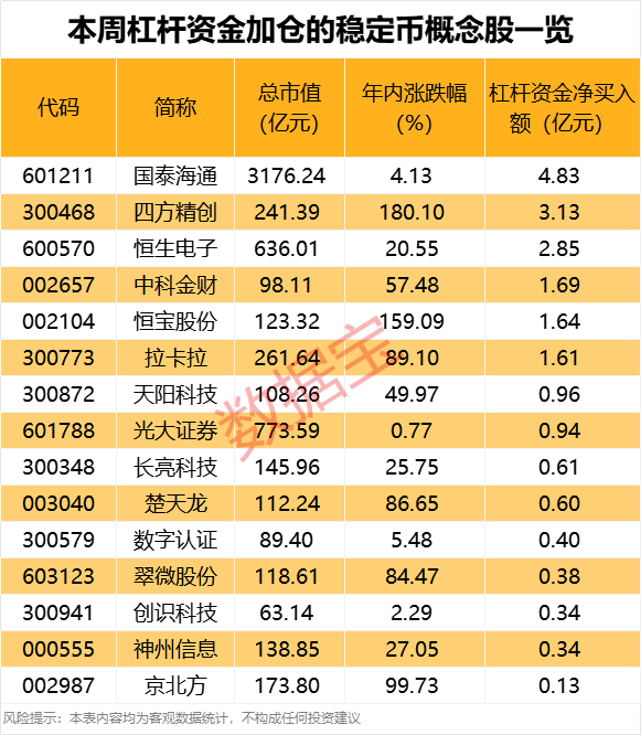 本周杠杆资金加仓的稳定币概念股一览本周杠杆资金加仓的稳定币概念股一览