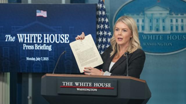 白宫新闻秘书莱维特展示特朗普发出的信函