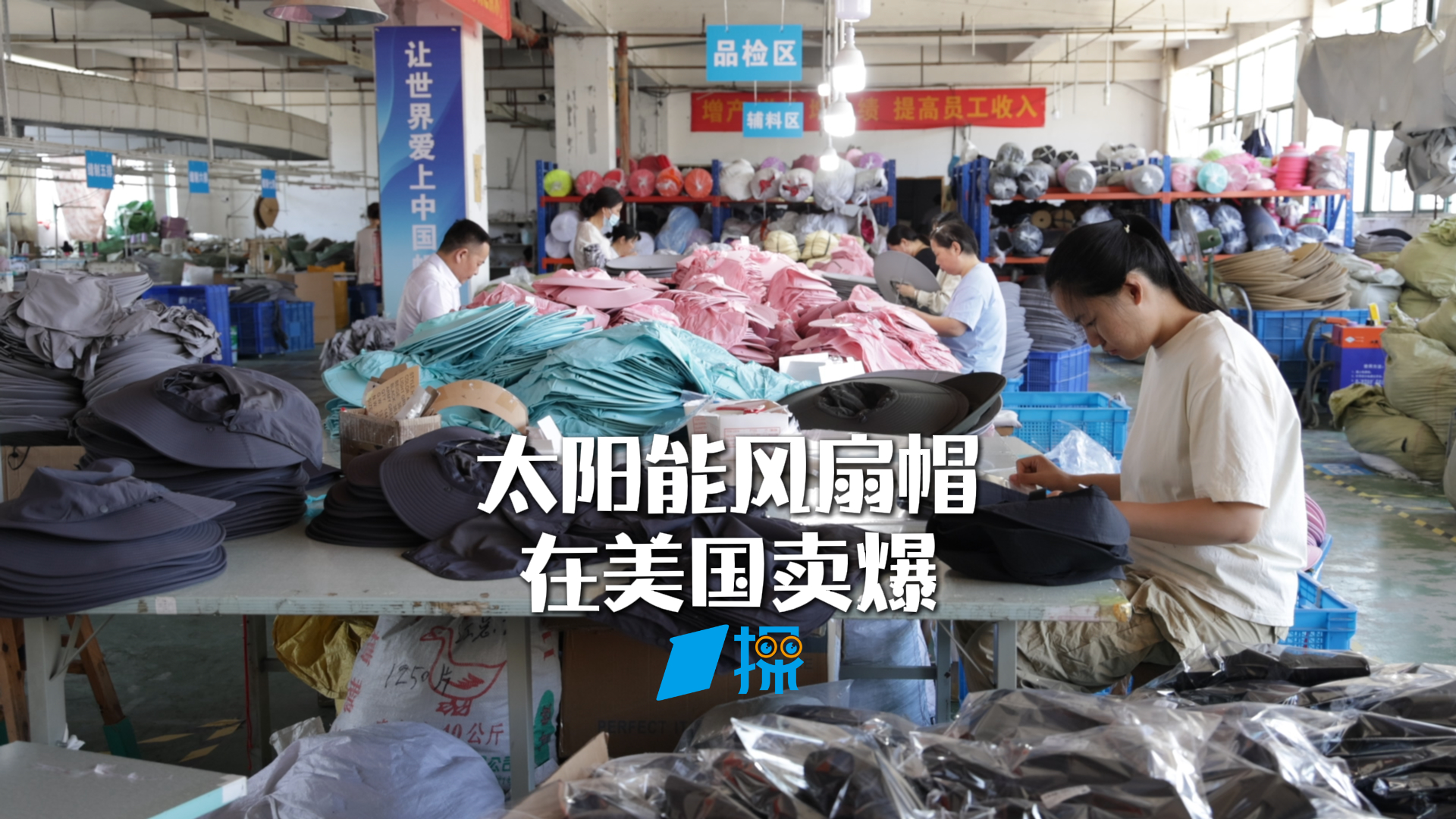 01'14'' 关税战后又一商品在美国卖爆 订单10万顶10万顶下 工厂一天生产5000顶 根本来不及做 |一探近日,一款国产太阳能风扇帽在美国市场火爆出圈,让售价20美元左右的传统遮阳帽,身价直接翻倍。第一财经记者实地走访浙江义乌的生产厂家,公司负责人告诉记者,在流量带动下,单个美国客户今年订单有望达到50万顶,工厂现在加班加点,产能维持在一天5000顶左右,后续将达到10000顶。更现场、更财经,一探究竟!